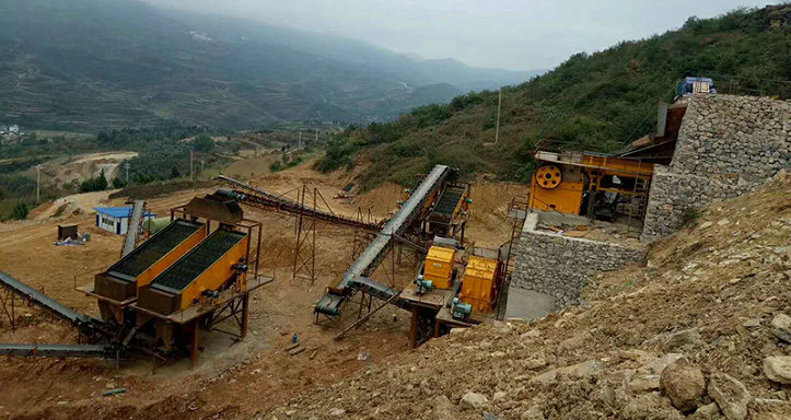 金寶山PE系列顎式破碎機的三相異步電機通過三角皮帶帶動轉子偏心軸按規定轉速做旋轉運動,懸掛在偏心軸上的動鄂頭在偏心軸偏心推動及下部軸板的支撐下,帶動動鄂板沿一定運動軌跡,相對定鄂板做擠壓,剪切運動,從而實現物料的破碎,小于排料口的物料在自重的作用下從排料口排出。動鄂板上部近圓形運動軌跡有助于大塊物料的破碎,下部長橢圓形運動軌跡使產量更高,粒度更均勻,在外來不能破碎的物料進入破碎腔使載荷徒增時,肘板通過自身斷裂保護其他機件不受損壞。